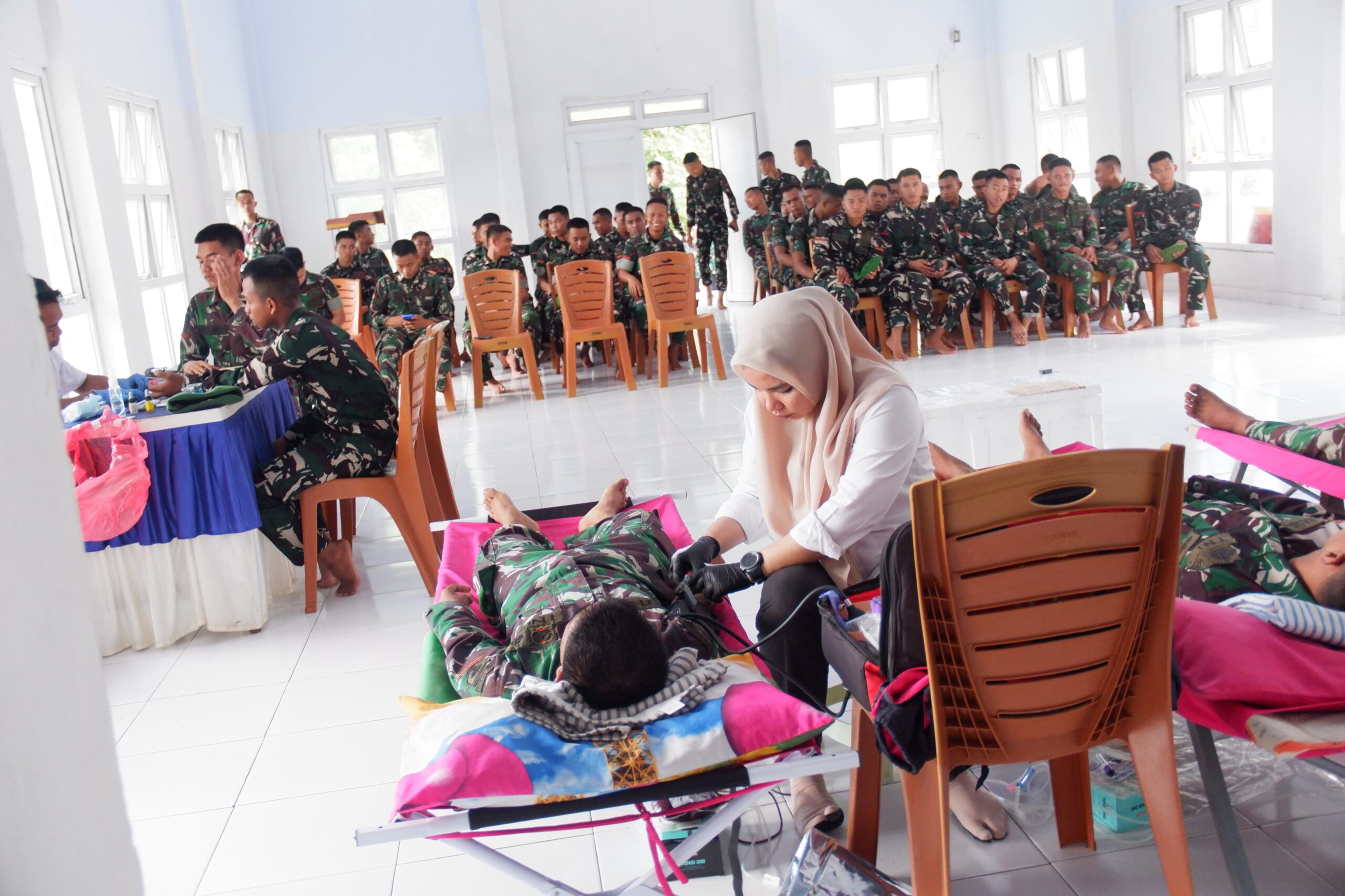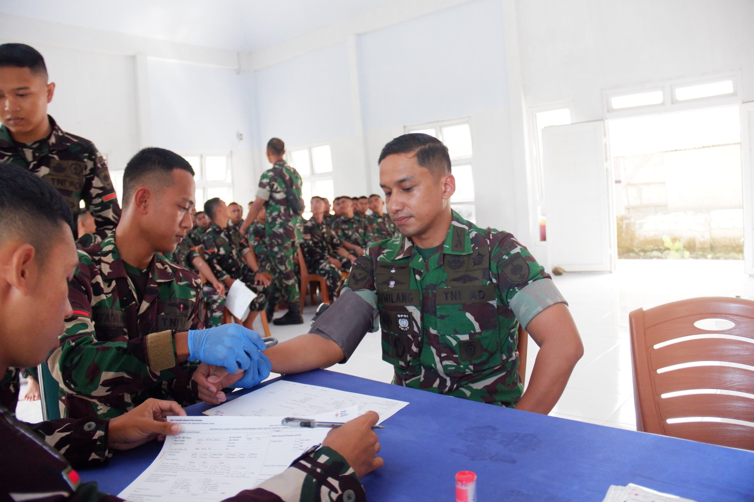 Danyonif TP 870/SW, Letkol Inf. Andi Gumilang saat pemeriksaan kesehatan dan donor darah.
