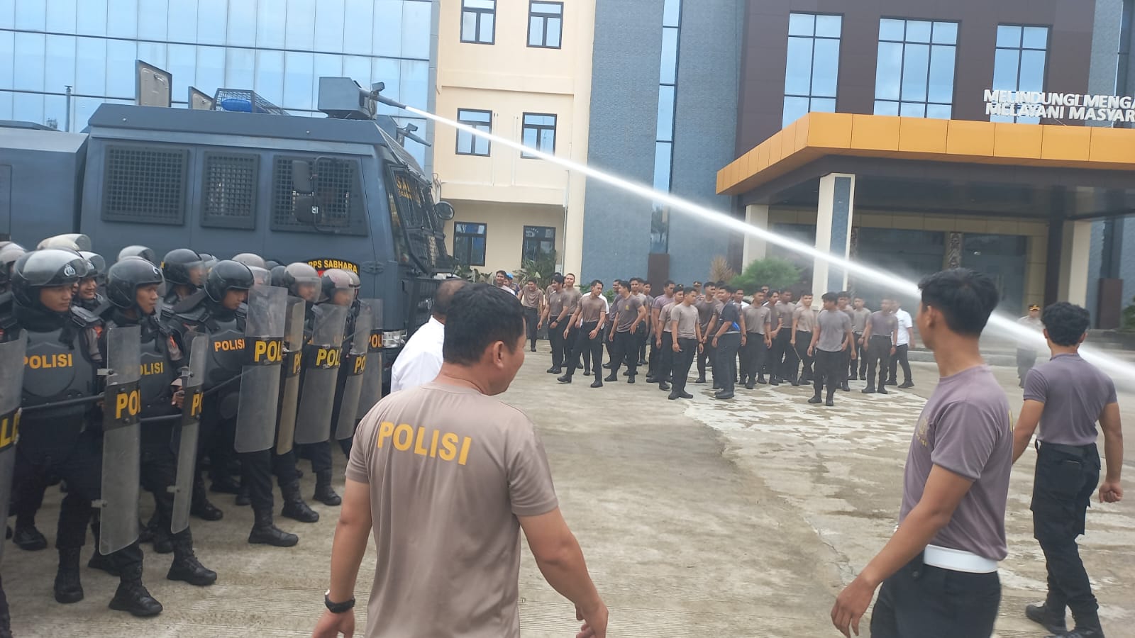 Dalam simulasi tersebut, petugas juga mengamankan satu orang yang diduga sebagai provokator guna mencegah potensi gangguan yang lebih luas. Secara bertahap, massa akhirnya membubarkan diri dengan tertib.