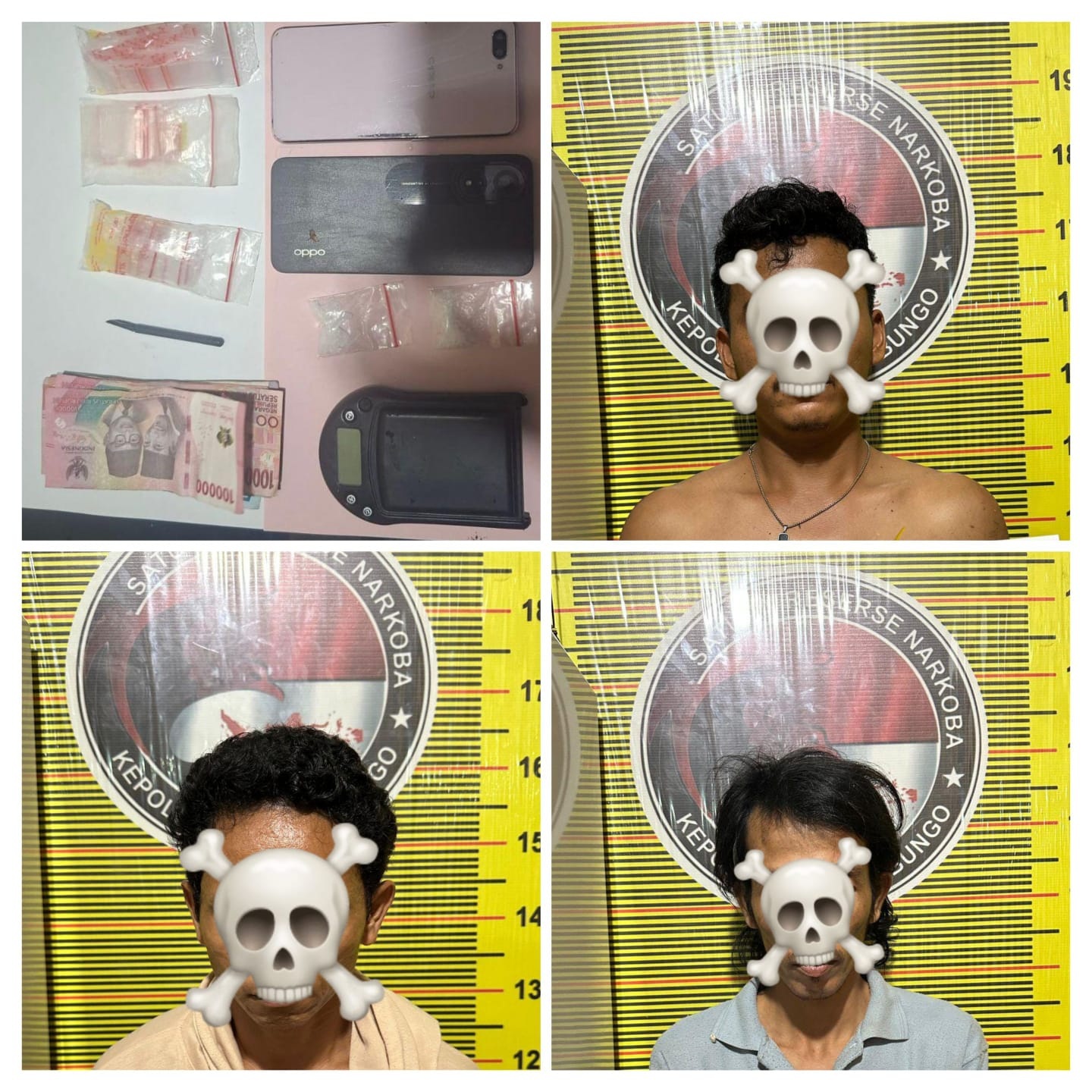 Pada Senin, 13 April 2026 sekitar pukul 16.30 WIB, petugas telah berhasil mengamankan tiga orang laki-laki di sebuah rumah di wilayah Bumbung Jaya, Kelurahan Sungai Arang, Kecamatan Bungo Dani, Kabupaten Bungo.