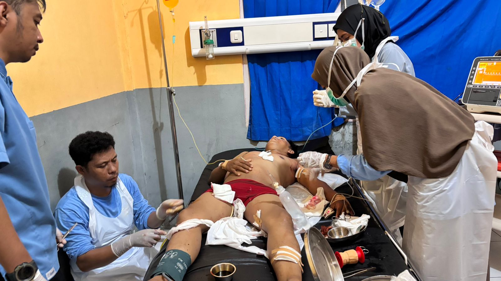 Mendengar hal tersebut, pelapor bersama keluarga segera menuju rumah sakit untuk memastikan kondisi korban. Setibanya di ruang UGD, korban terlihat dalam keadaan kritis dengan sejumlah luka tusukan di tubuhnya.
